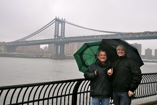 We caught the F train from 23rd St to York St, Brooklyn and went to an area now referred to as DUMBO. This stands for Down under Manhattan Bridge Overpass. The area, formerly trade warehouses and riverside dockyards is undergoing gentrification and has quite a buzz. one of Fred's friends sent a whole lot of information about where to go and what to do there. She explained that a businessman had bought all the warehouses in the area about 30 years ago for 75 cents per square foot and is now selling them as apartments for $1000's per square foot.